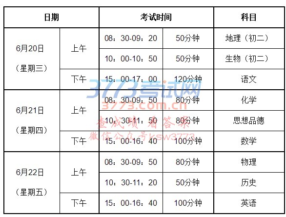 1.考试科目及分值。考试科目:语文、数学、英语(含听力)、物理、化学、思想品德、历史、生物、地理、体育,其中生物和地理安排在八年级考试。科目分值:语文、数学、英语(含听力)各120分,物理、化学、思想品德、历史各100分,生物、地理各50分(卷面分值各100分,分别以50%计入总分),体育70分,总分930分。