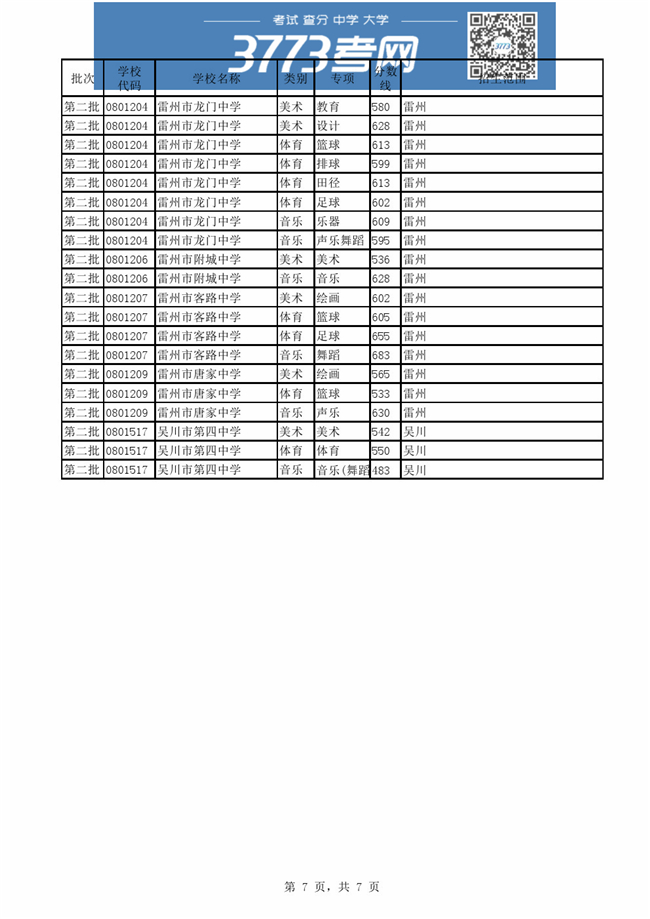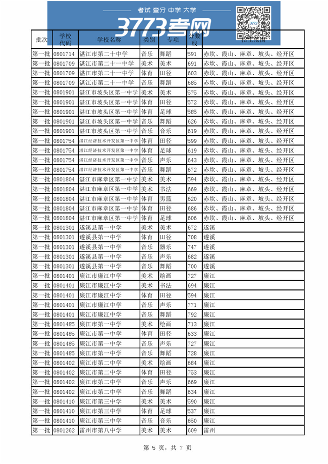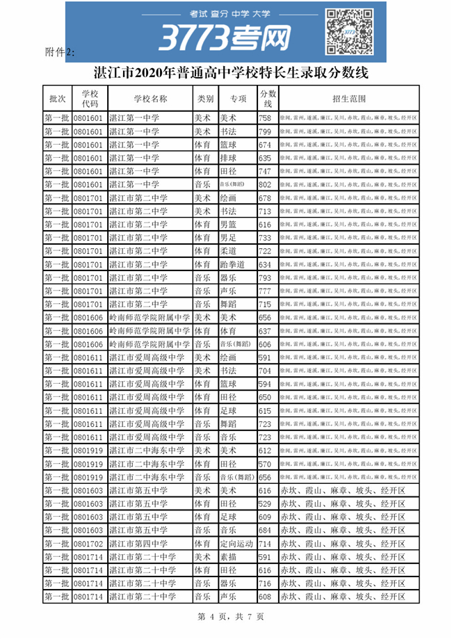关于公布湛江市2020年高中阶段学校录取控制分数线的通知