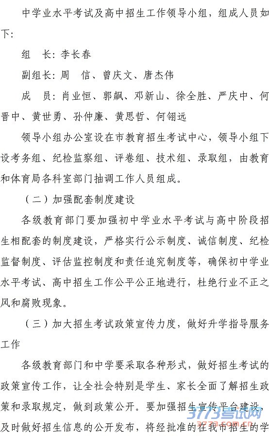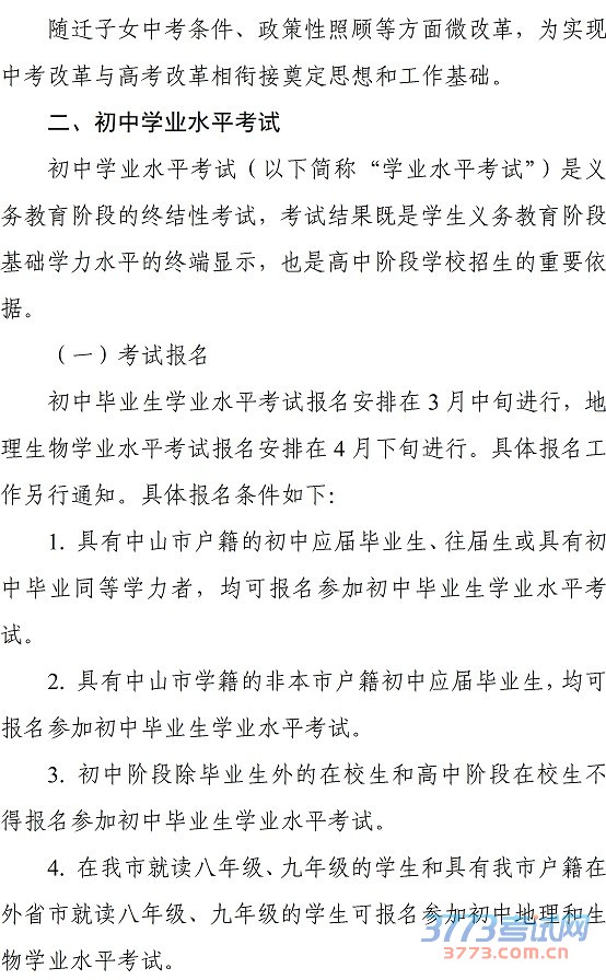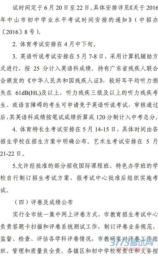 关于印发中山市2016年初中学业水平考试与高中阶段学校招生工作意见的通知
