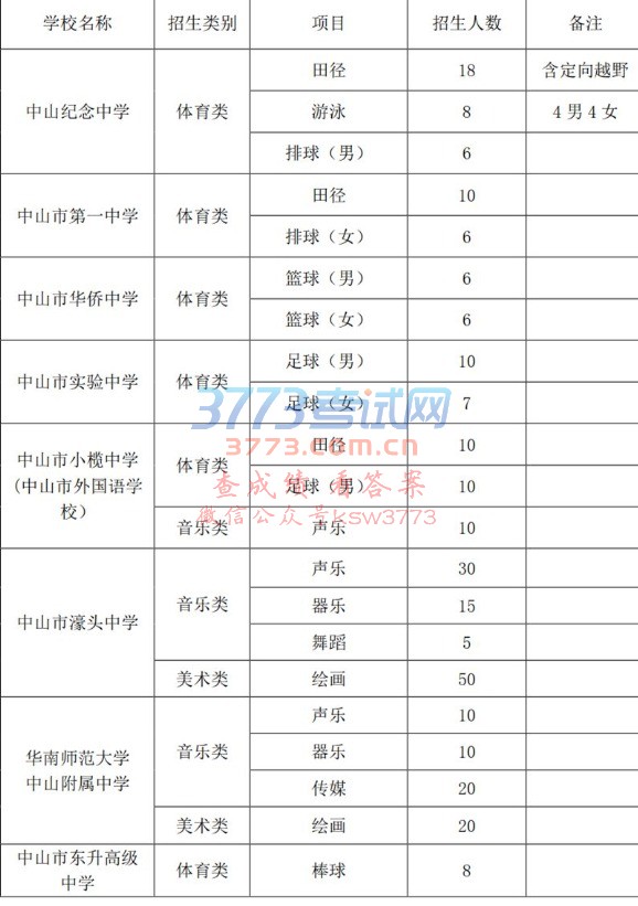 2018年中山市普通高中招收体育生(运动训练)、艺术生项目有哪些?