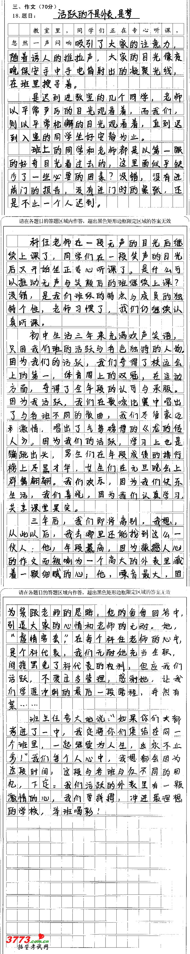 福建莆田2012年中考满分作文欣赏:活跃的不是外表是梦