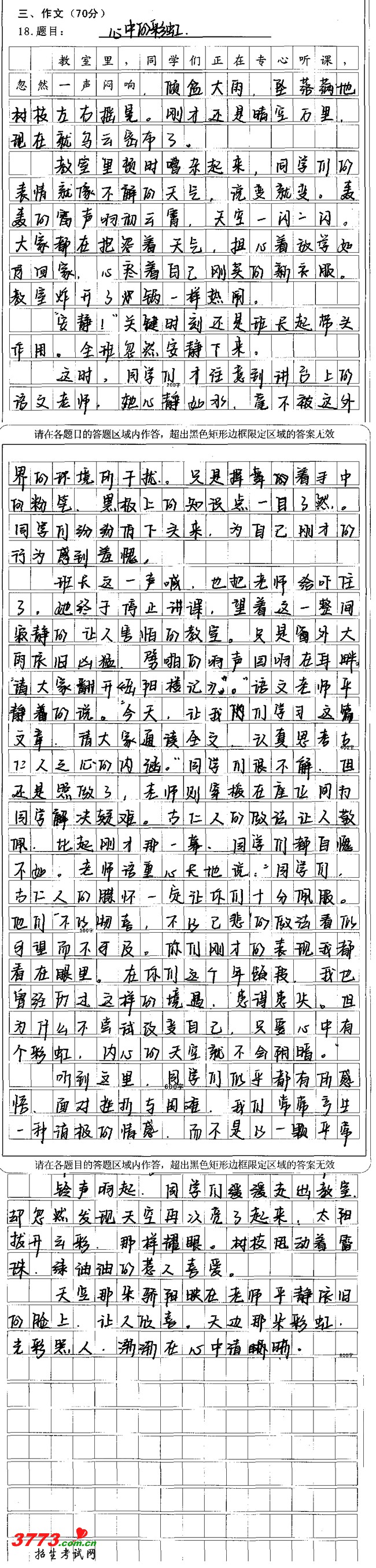福建莆田2012年中考满分作文欣赏心中的彩虹