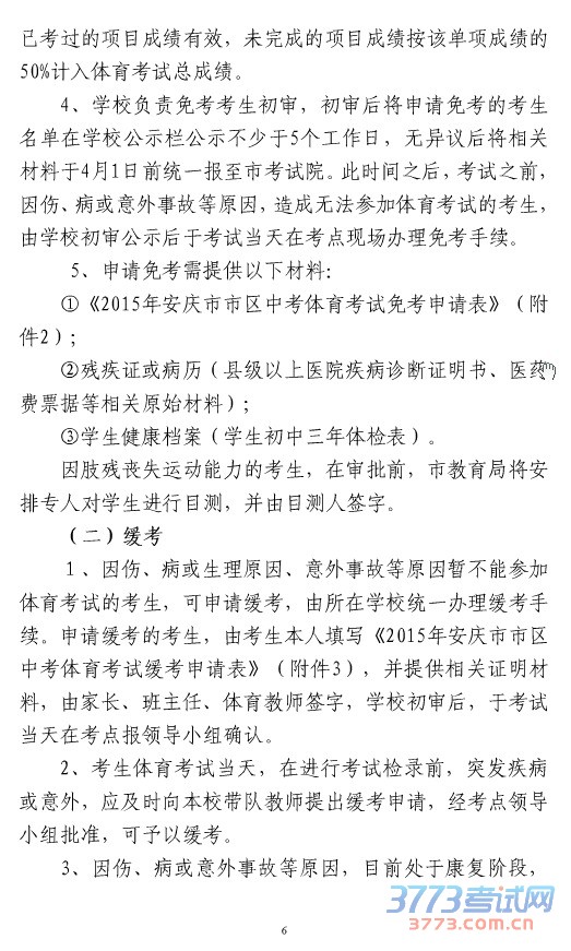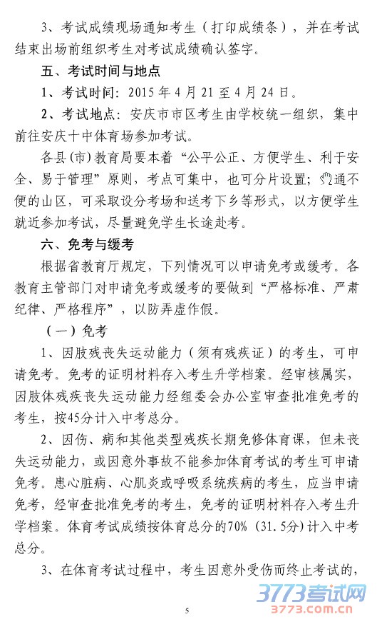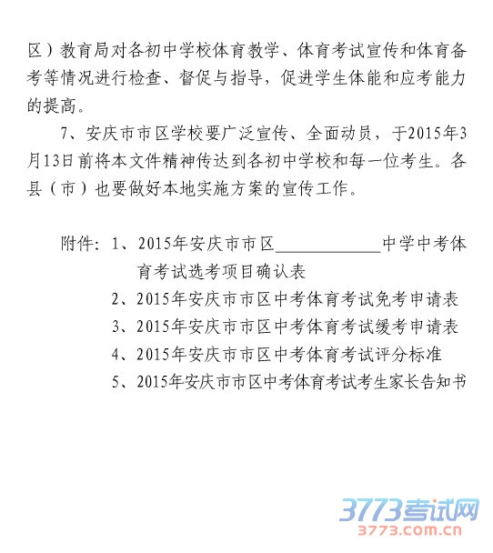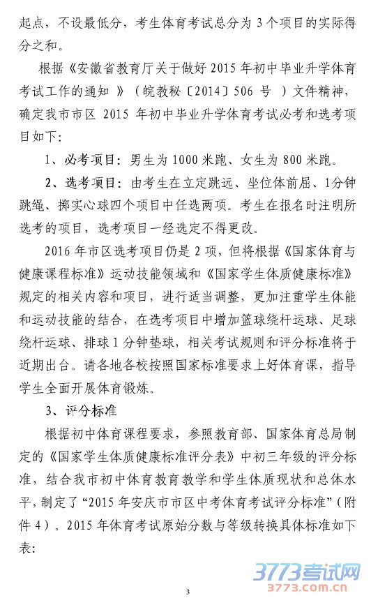 关于印发《安庆市市区2015年初中毕业学业体育考试实施方案》的通知
