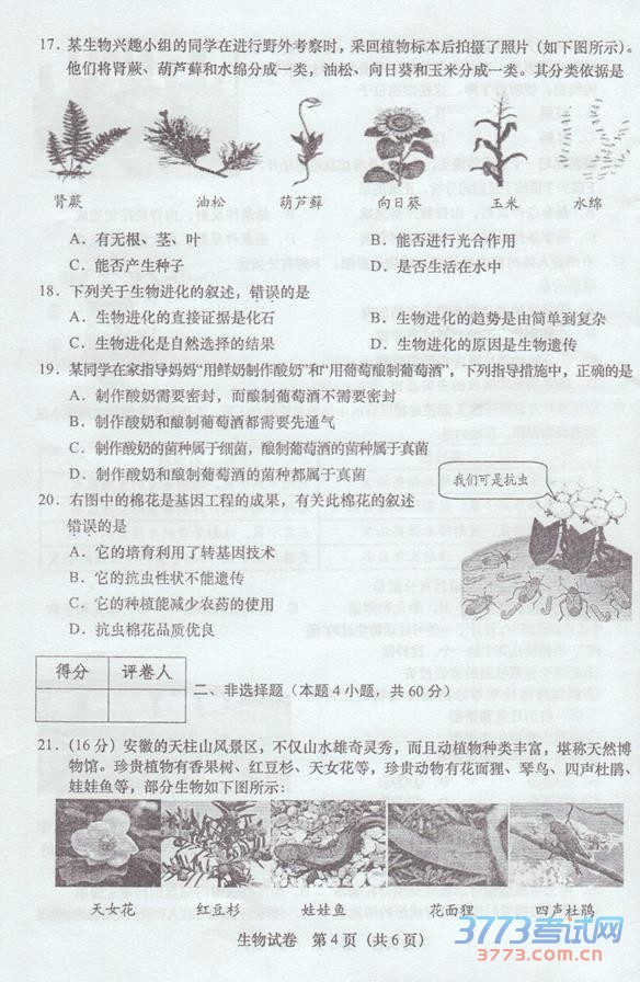 2014安庆中考地理生物学科学业考试有关