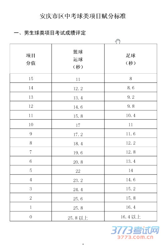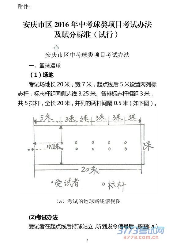安庆市区2016年中考球类项目考试办法及赋分标准