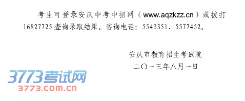 安庆中考中招网或拨打16827725查询录取结果,咨询电话:5543351 5577452
