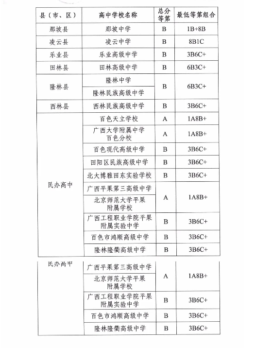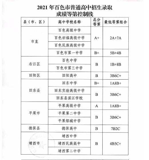 2021年广西百色中招录取分数线公布