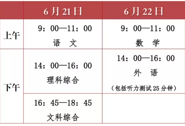 文化课考试时间