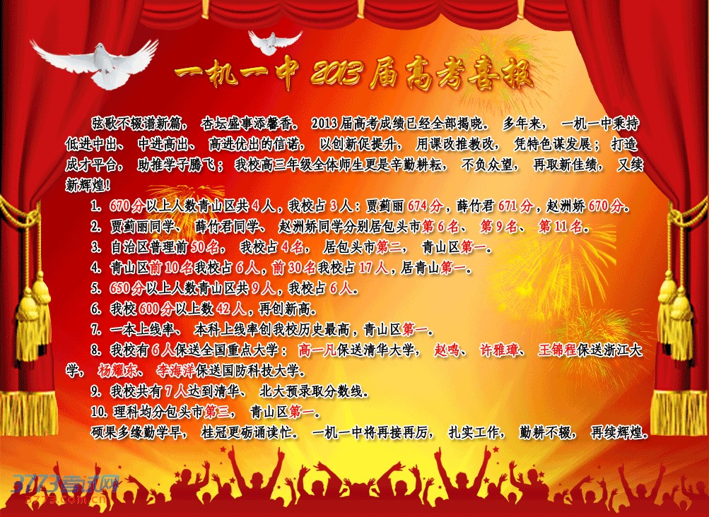 3. 自治区普理前50名,我校占4名,居包头市第三,青山区第一;