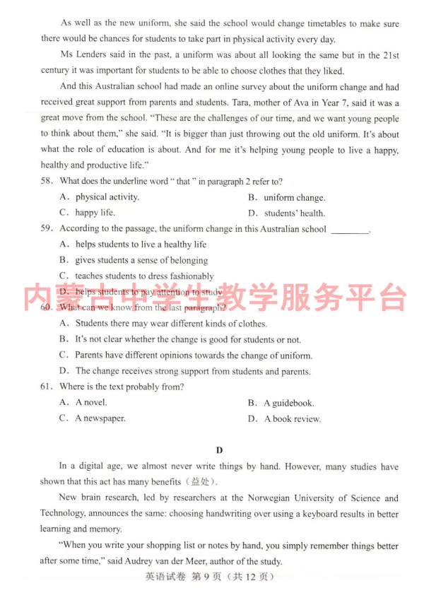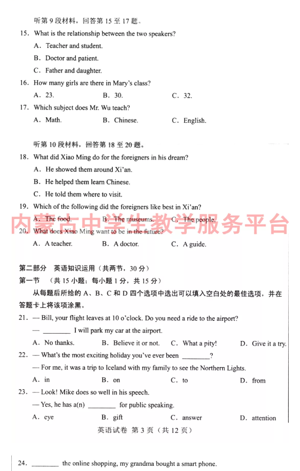 3773考试网 - 中考 - 中考试题答案 - 内蒙古中考 - 包头中考 - 正文