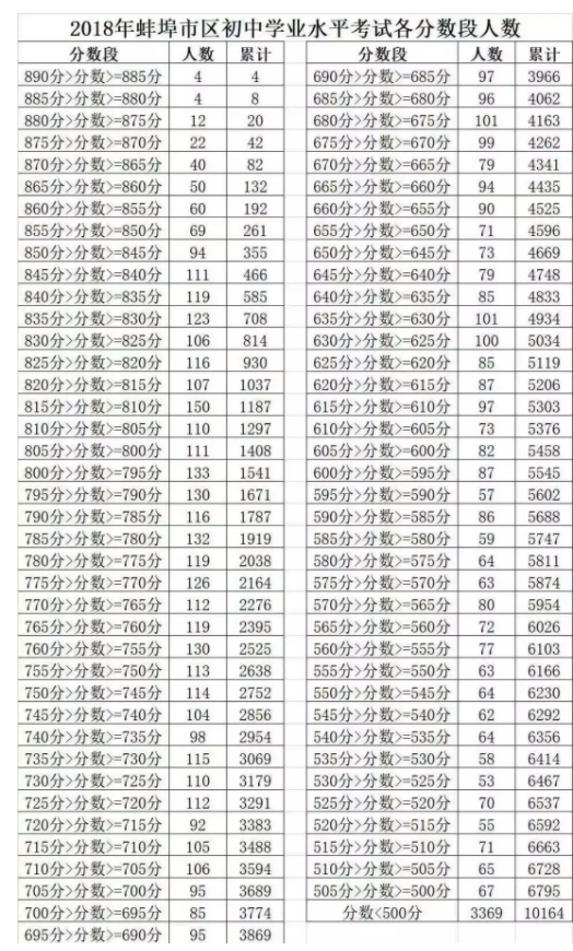 蚌埠市区普通高中最低控制线公布了!各分数段人数来了,最高分889!
