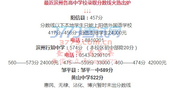 2016滨州市北镇中学分数线公布