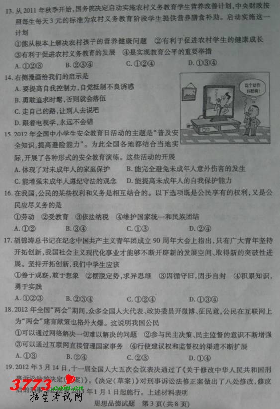 滨州市教育局关于2012年中考及高中阶段学校招生工作的意见