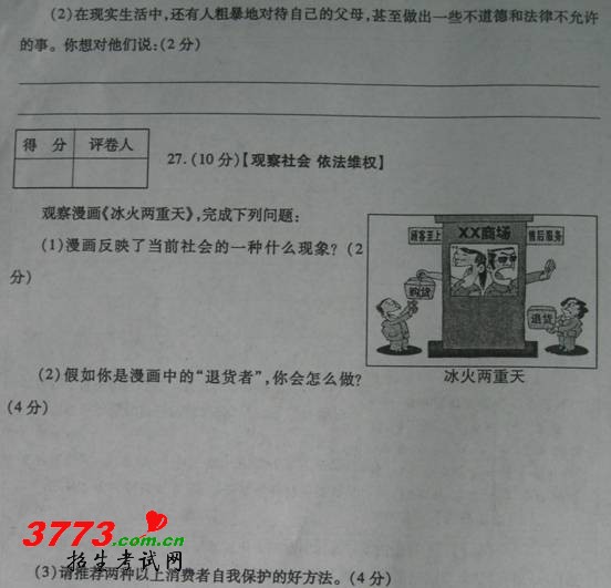山东滨州2011年中考思想品德试题及答案