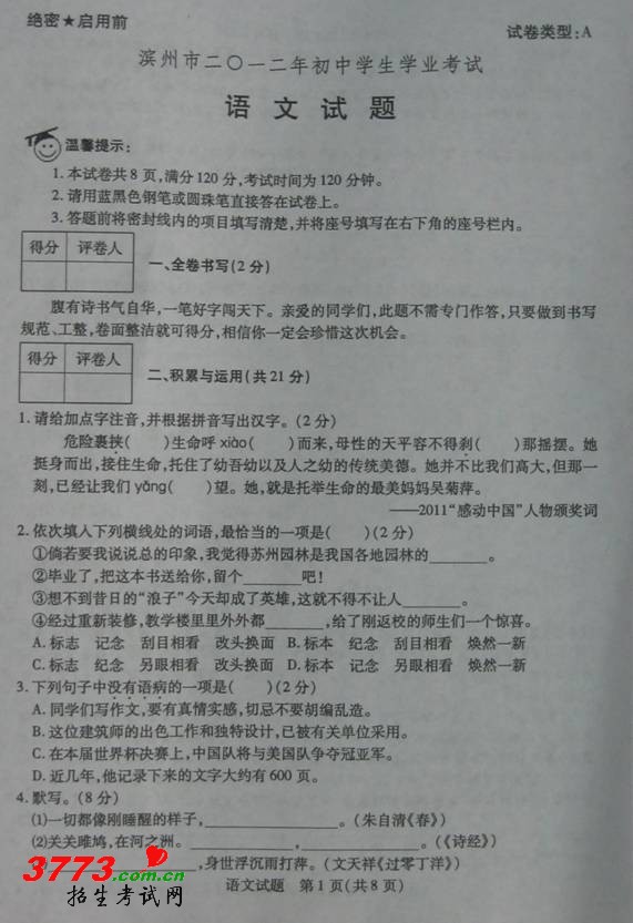 2012滨州市中考和高中阶段学校招生工作领导小组