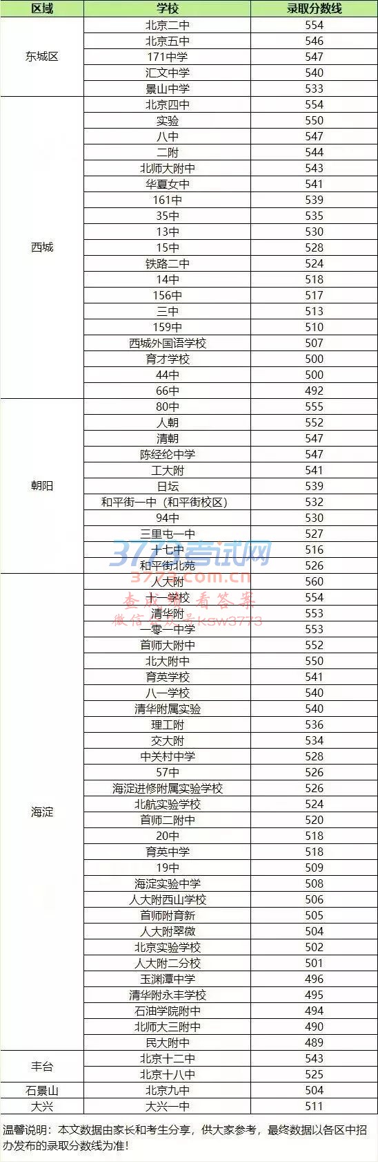 2018北京中考录取分数线公布