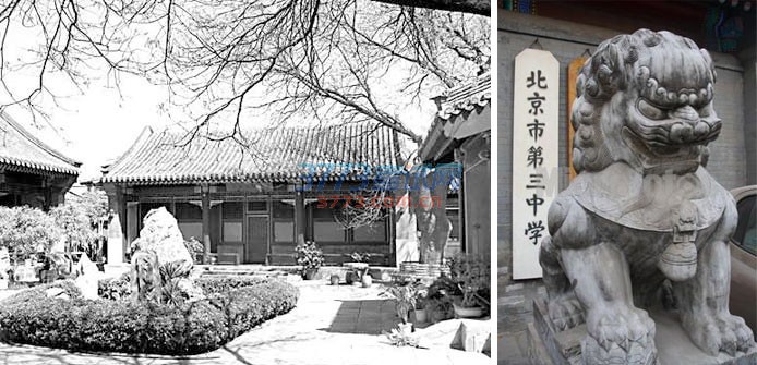 北京三中是一所历史悠久的老校,前身是1724年(清雍正二年)建立的清宗室右翼宗学堂,至今已有287年的历史。著名文学大师曹雪芹曾在该校工作十年,并在此酝酿《红楼梦》。人民艺术家老舍;著名学者罗长培、于光远、徐城北;文艺界名人苏民、蓝天野、方成、董浩、邓伟等,曲艺界名人马季、笑林、石富宽、崔琦等都毕业于北京三中。正如著名学者启功先生为三种题词:起自雍乾世,人才辈辈出。