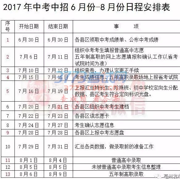 2017亳州中考时间日程安排