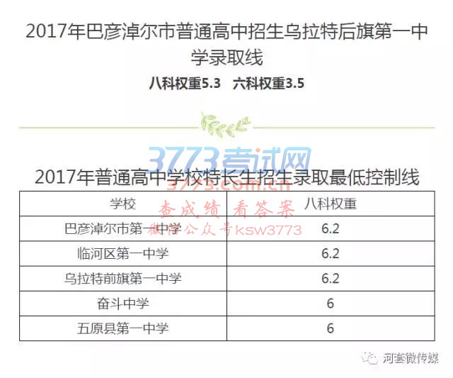 2017巴彦淖尔中考高中特长生录取分数线公布