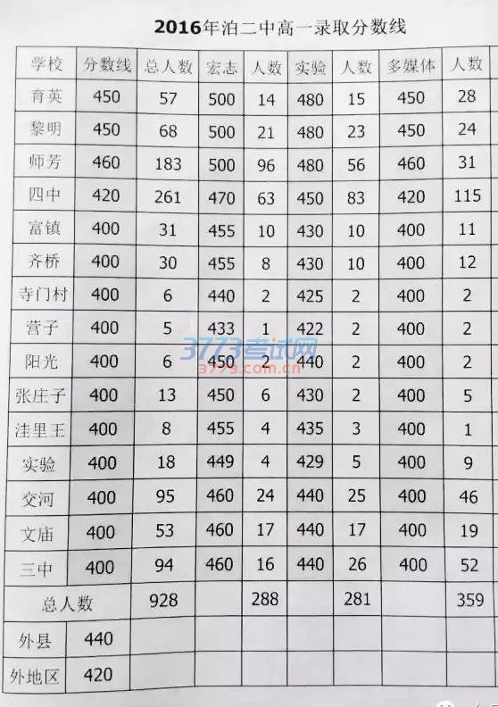 2016泊头二中录取分数线