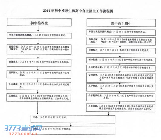 2014年初中推荐生和高中自主招生工作流程图