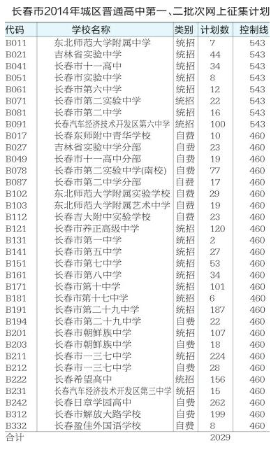 长春中考分三个批次录取,三个批次共有34所高中。第一批次有东北师范大学附属中学、吉林省实验中学、长春外国语学校、长春市十一高中、长春市实验中学、长春市第六中学、长春市第二实验中学、长春市第二中学、长春汽车经济技术开发区第六中学这九所高中。