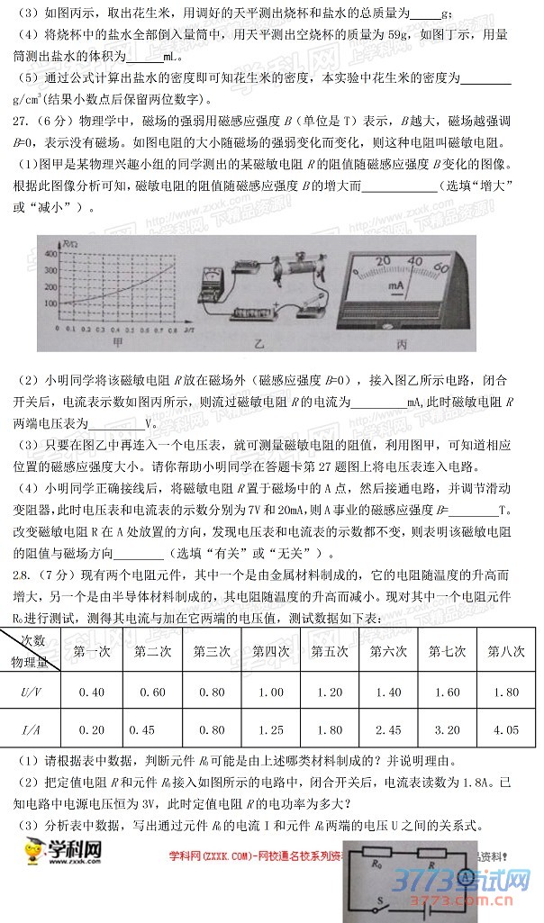 2015常德市中考物理试题及答案发布