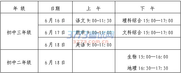 2017长沙中考时间科目安排