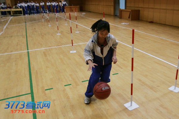 (2013年长沙体育中考将于4月16日—27日进行,一位考生在参加篮球测试。资料图)