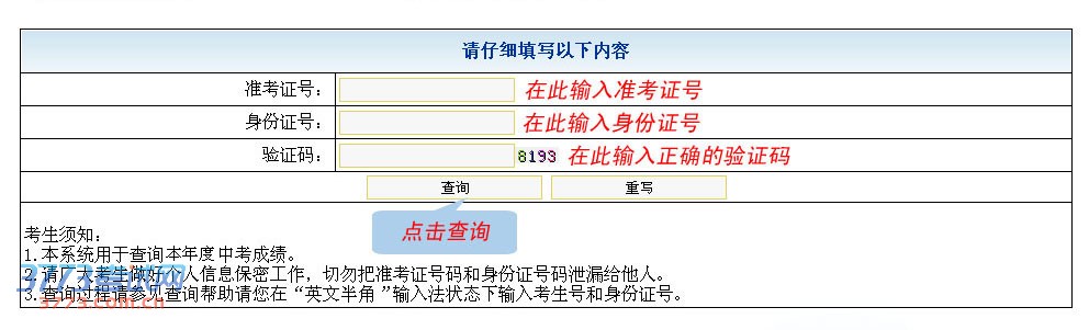 第二步:如图所示,根据要求填入考生号(9位)、身份证号(18位),然后填入图片中所示的验证码,点击“查询”按钮。
