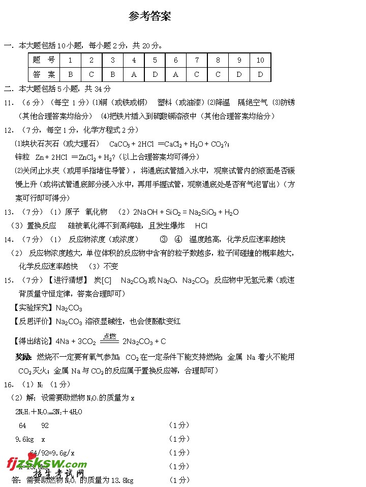 安徽巢湖2011年中考试化学试题及答案