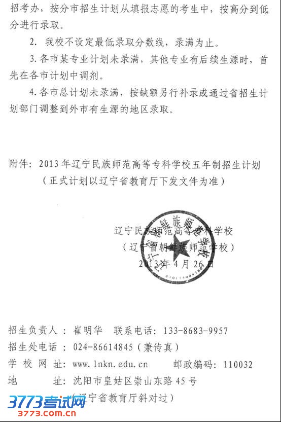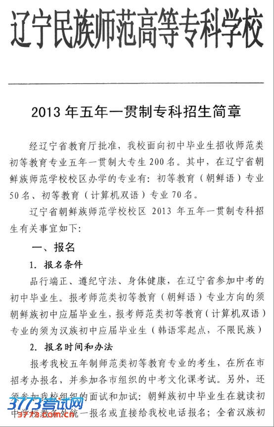 2013年辽宁民族师范高等专科学校五年制招生计划(朝阳市)