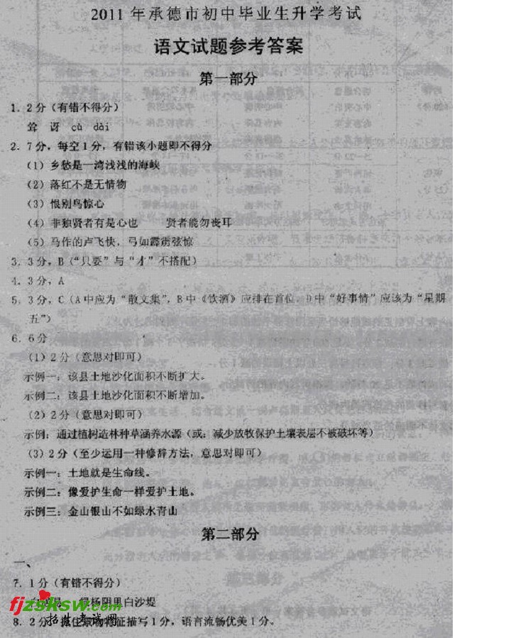 2011年浙江嘉兴、舟山中考数学试题及答案