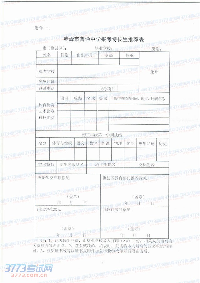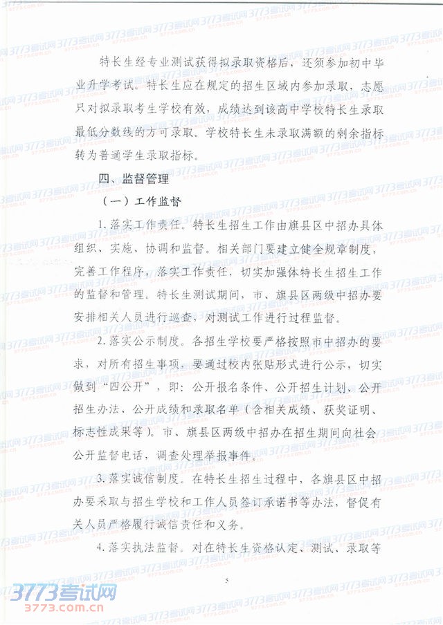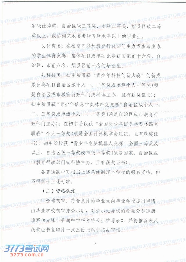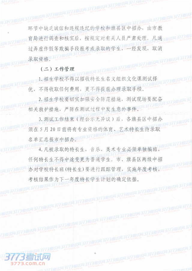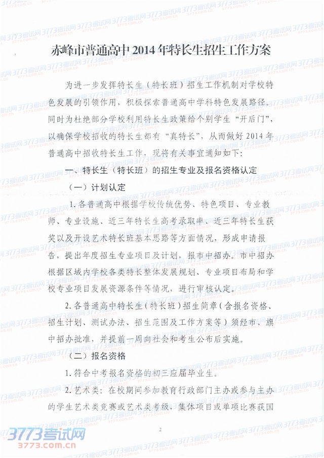 2014赤峰市普通高中特长生招生工作方案