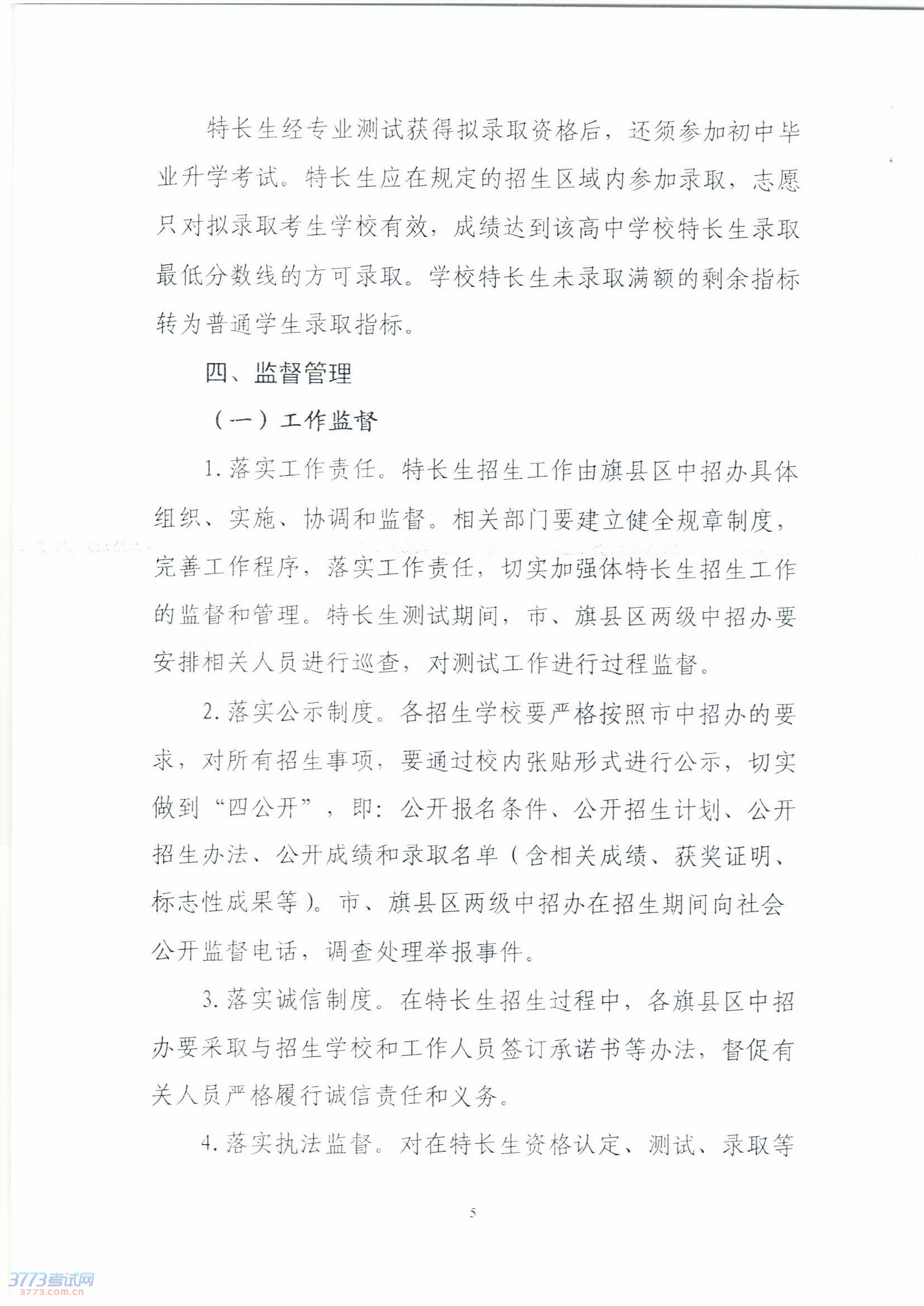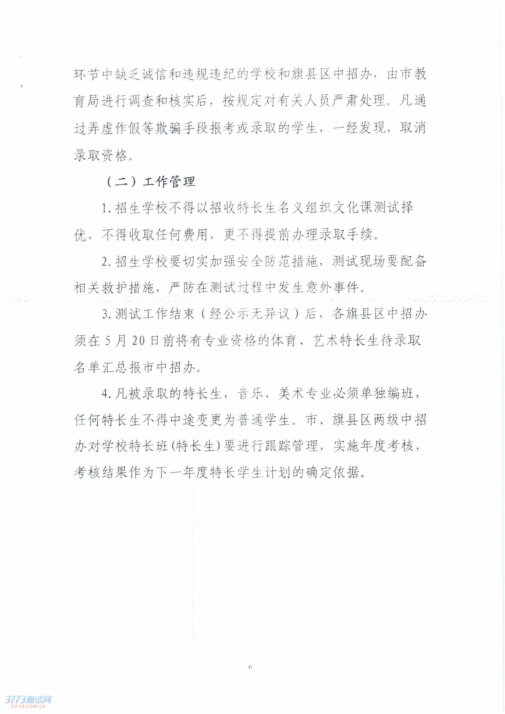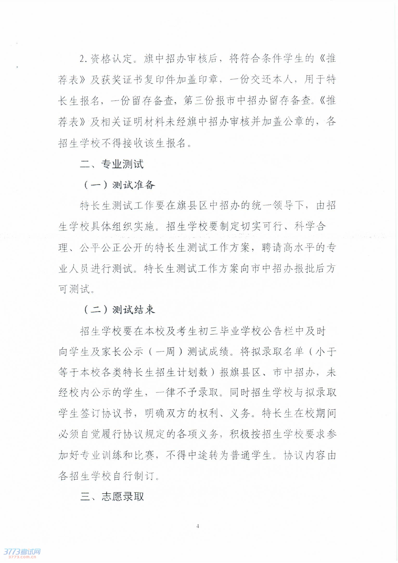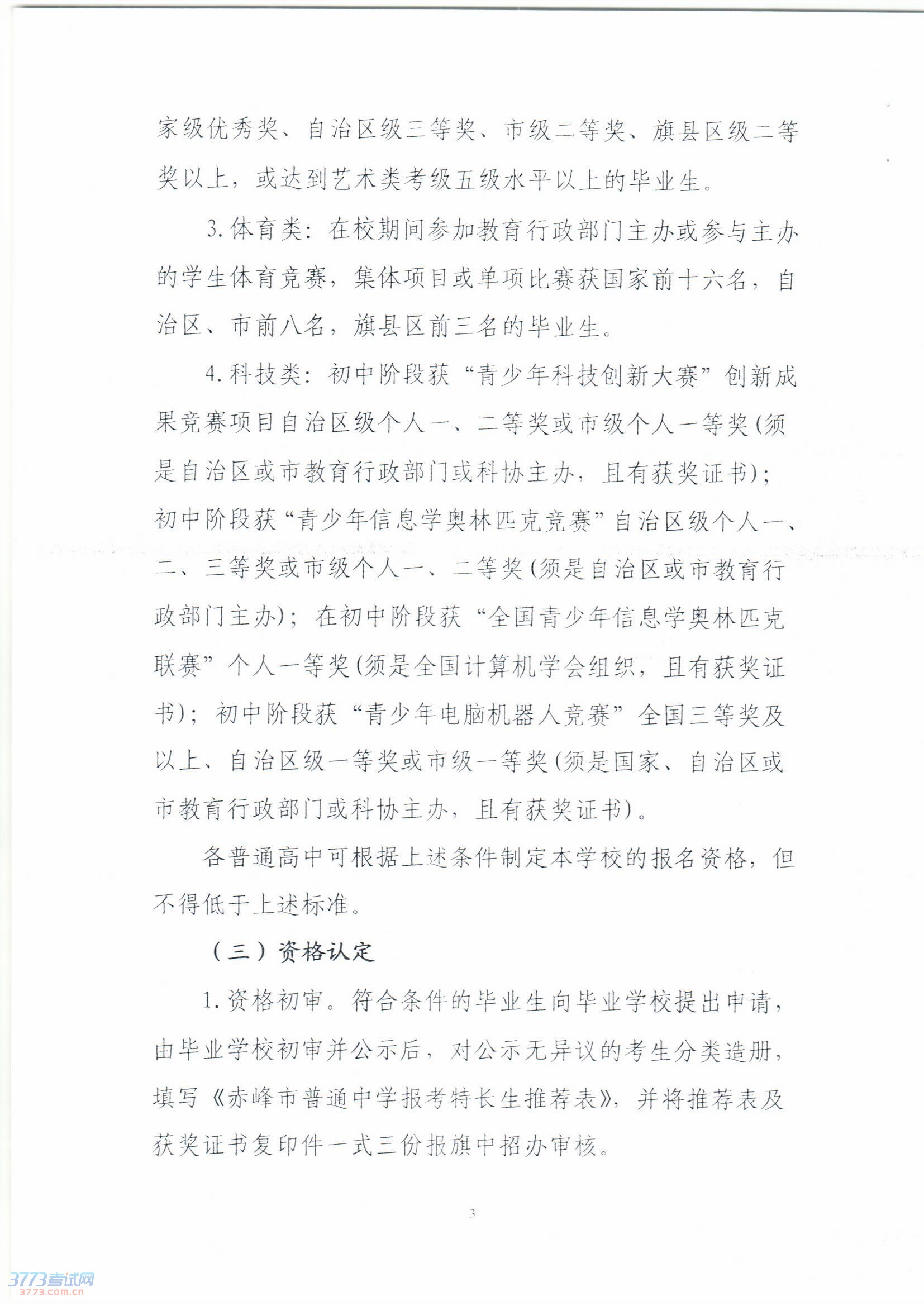 2014年赤峰市普通高中特长生招生工作方