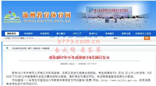 池州2017中考成绩6月29日发布,三种方式可查中考成绩