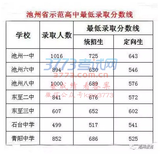 2017池州省示范高中录取人数和分数线(附2017年石台中学新生录取名单)