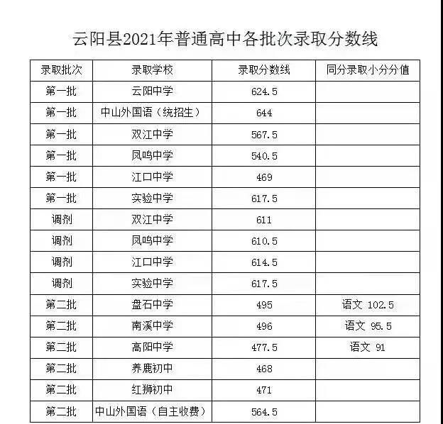 2021云阳中学录取分数线公布