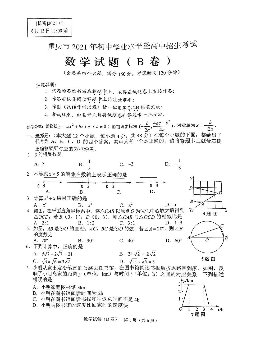3773考试网 - 中考 - 中考试题答案 - 重庆中考 - 正文