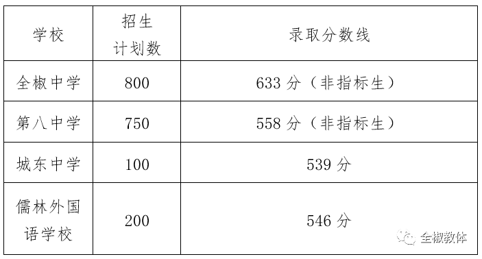 全椒县2020年普通高中录取分数线公告