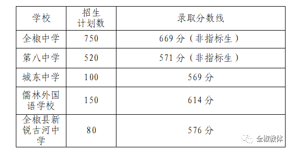 根据《滁州市教育体育局关于做好2021年普通高中招生工作的通知》(滁教体基﹝2021﹞14号)文件精神,按照市教育体育局下达我县的普通高中招生计划、考生志愿、文化课成绩、理科实验操作考试成绩、体育考试成绩、地理和生物考试成绩、综合素质评价等信息,兼顾80%省示范高中指标生分配到各初中等因素,划定全椒县2021年普通高中录取分数线。现公告如下。