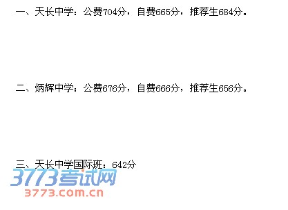 天长中学:公费704分,自费665分,推荐生684分。