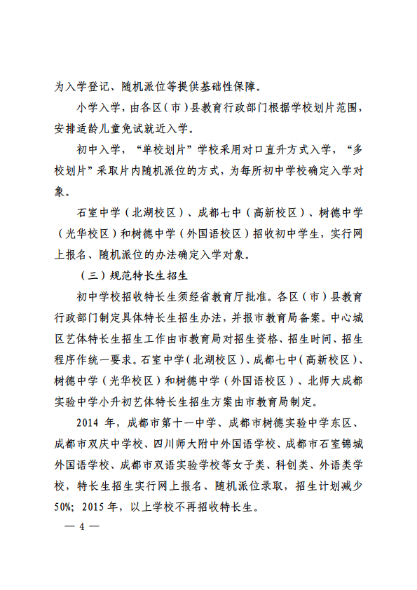四川省教育厅关于小升初免试就近入学工作的实施意见