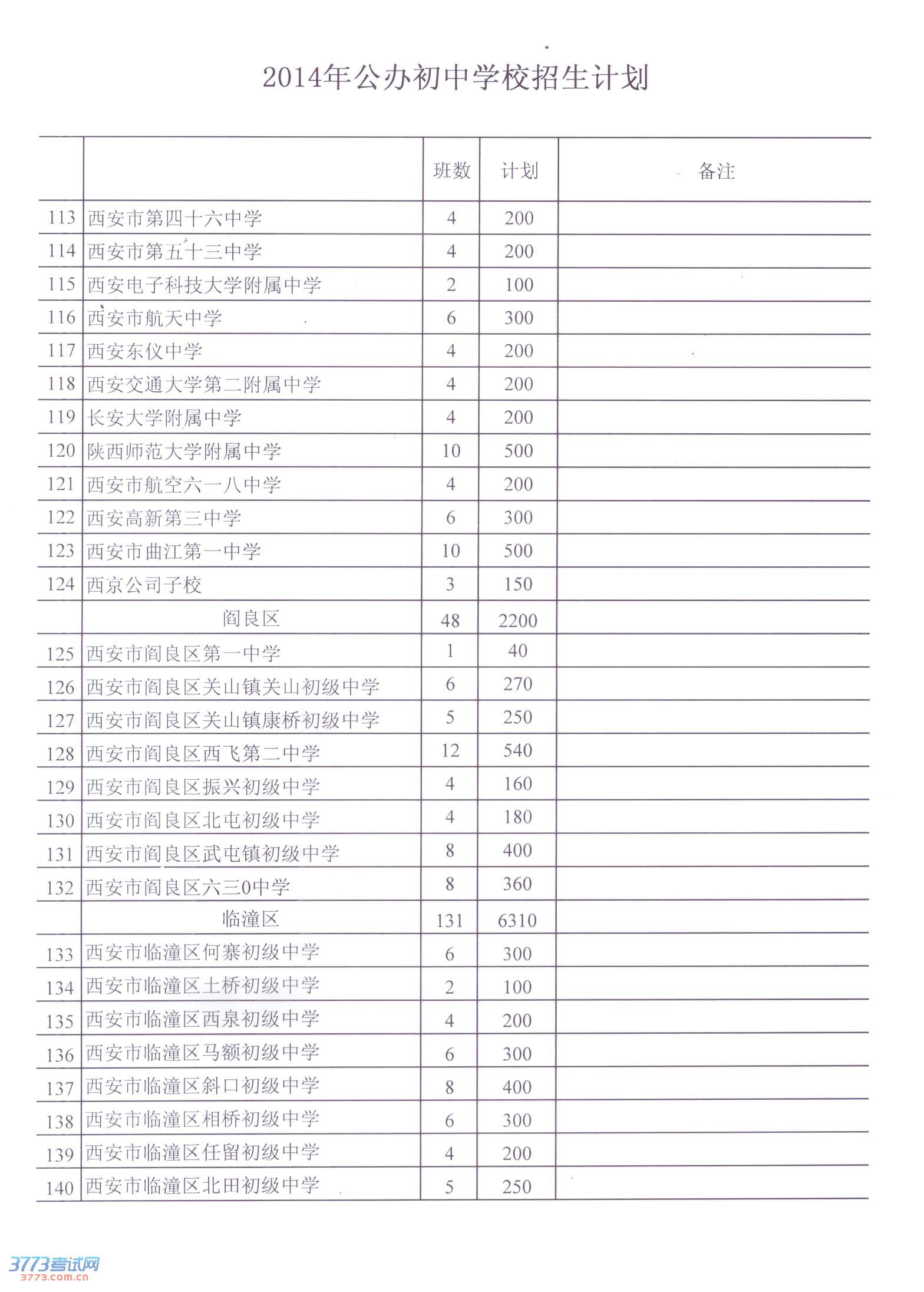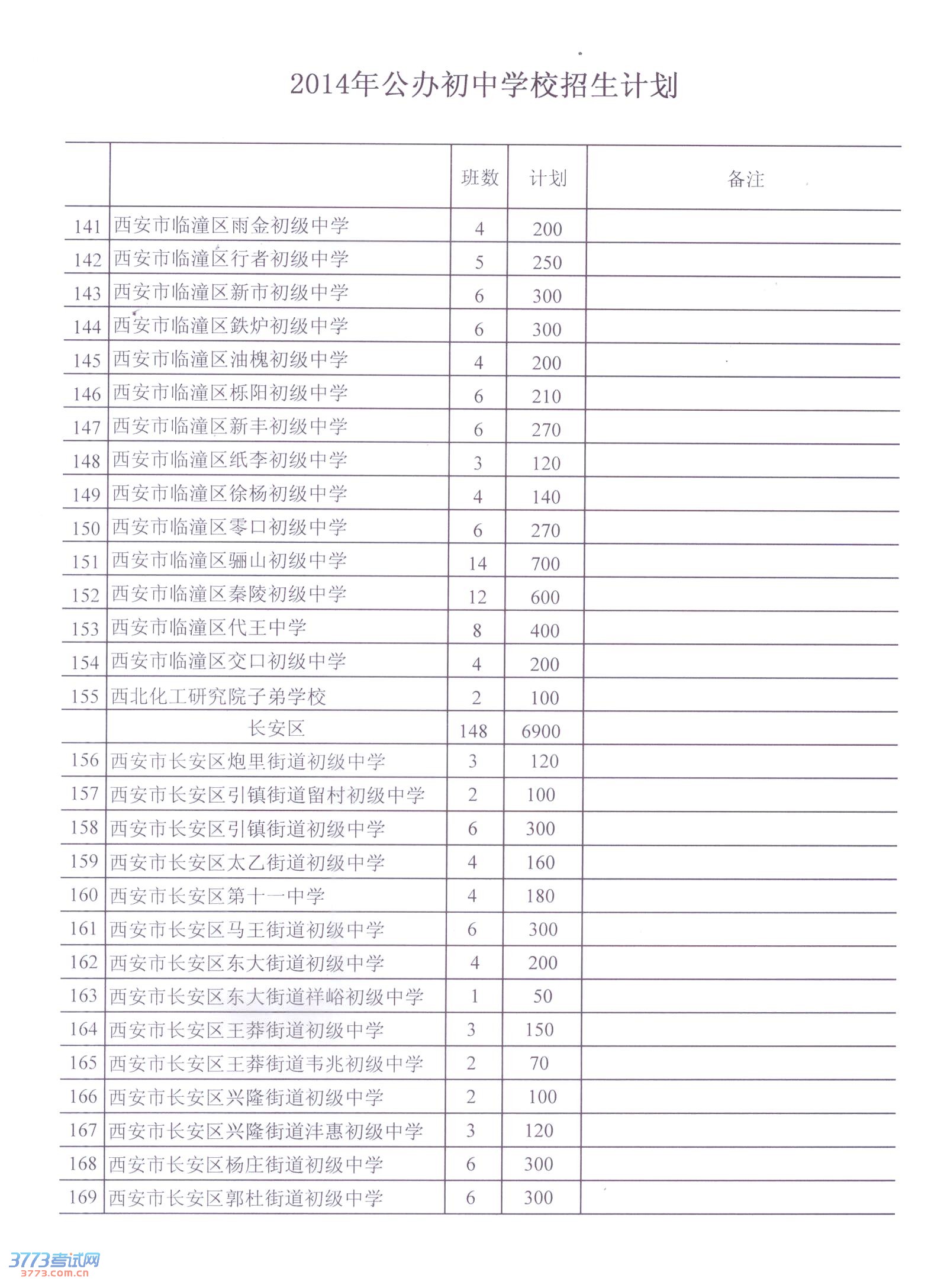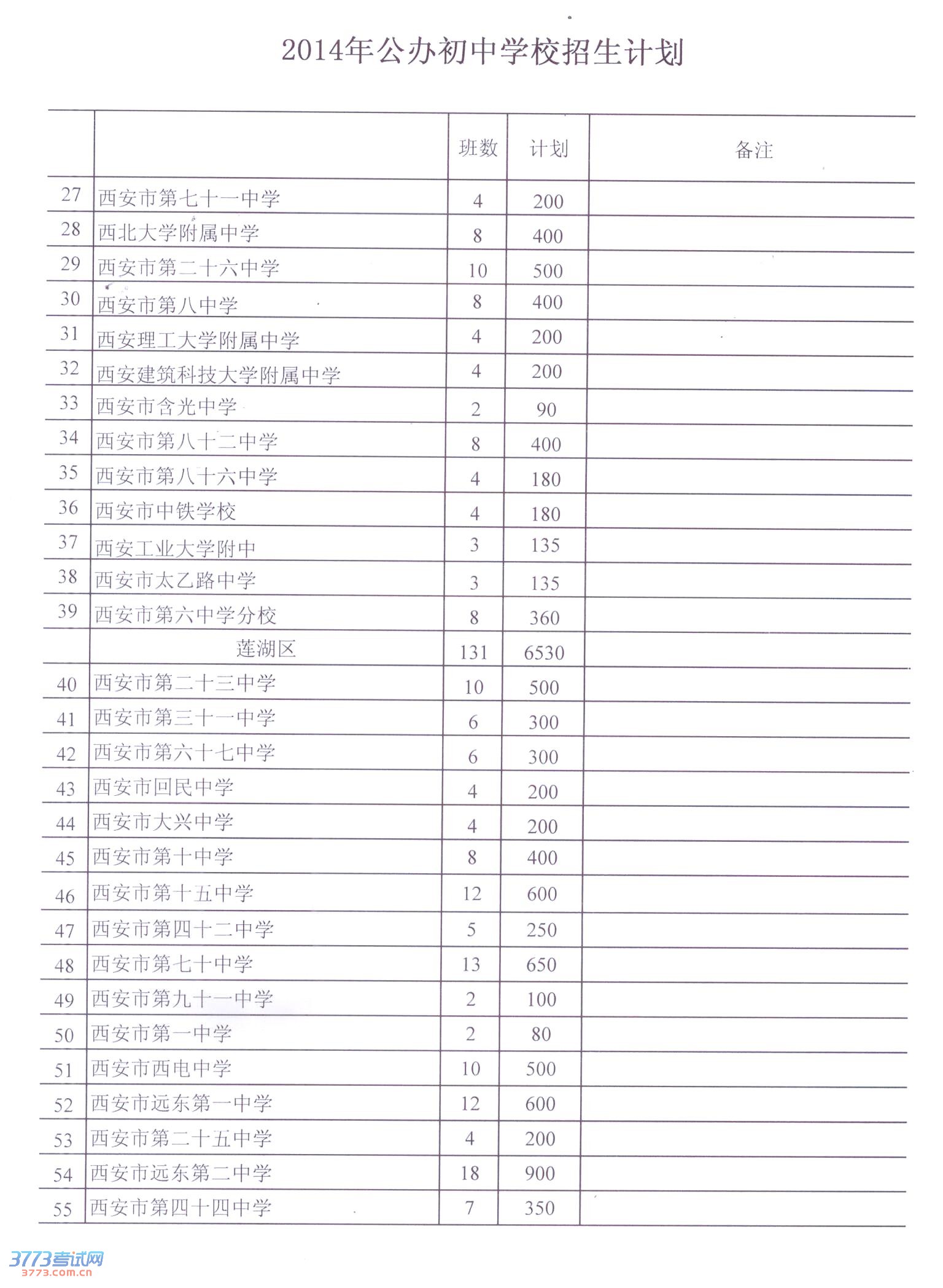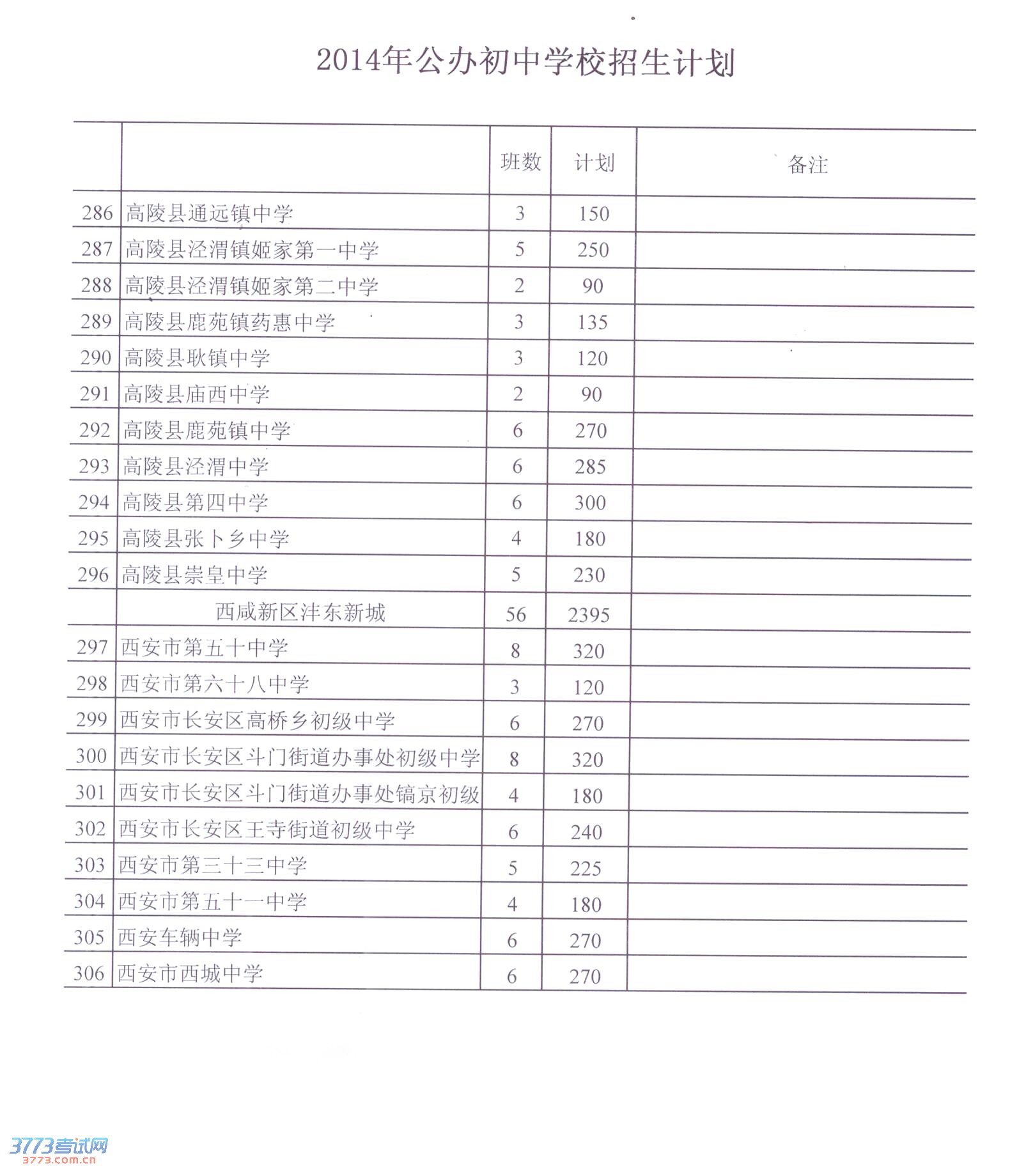 西安市教育局关于下达2014年初中学校招生计划的通知