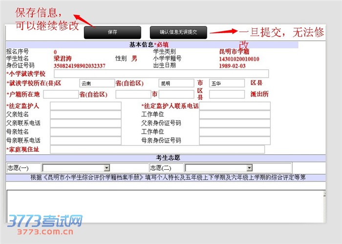 图4:报名信息确认表格打印,打印后到选报学校确认