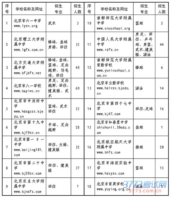 海淀区近日公布了2015年海淀区初中入学体育特长生招生计划,共有18所学校招收体育特长生,招生项目涵盖了田径、男足、棒球、垒球、羽毛球等。