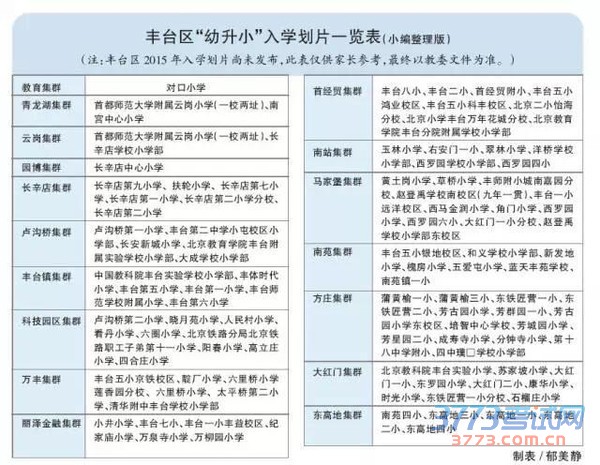 丰台区小学、初中划片入学方式(2015年)