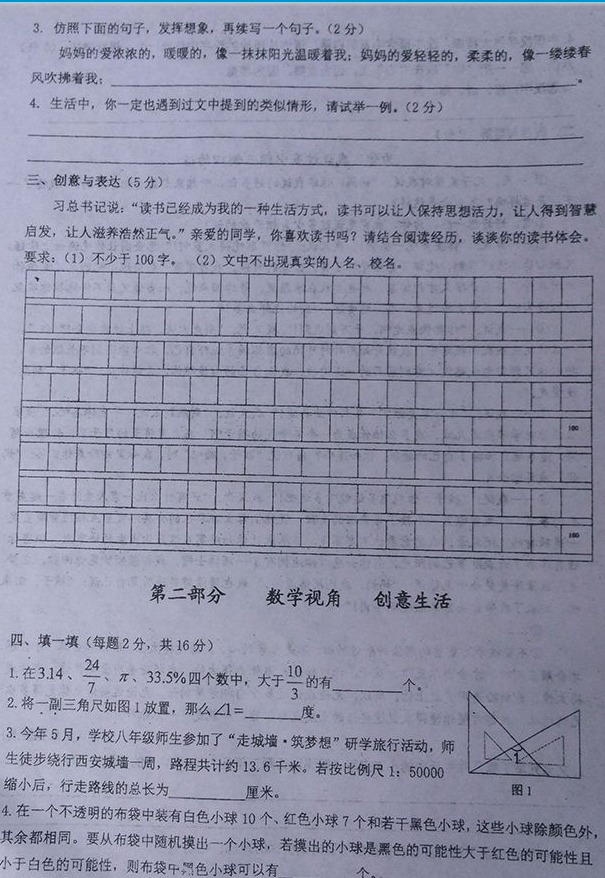 2015西安交大附中小升初5·30综合素质阶段评价内容试题