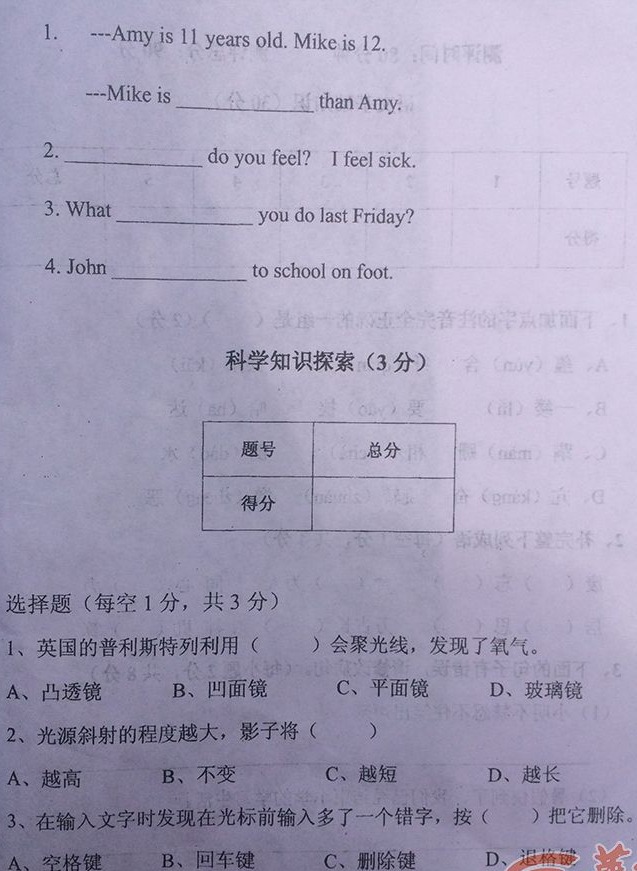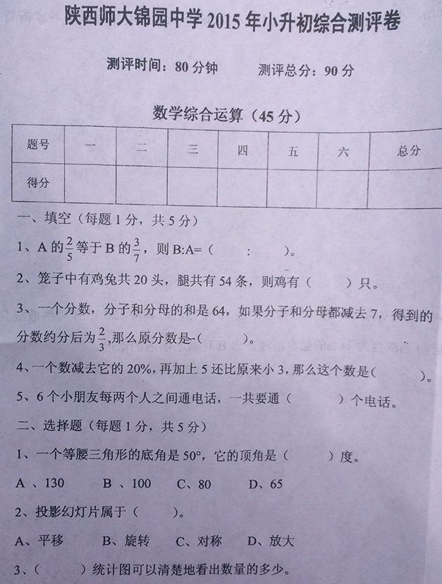 2015西安交大附中小升初5·30综合素质阶段评价内容试题