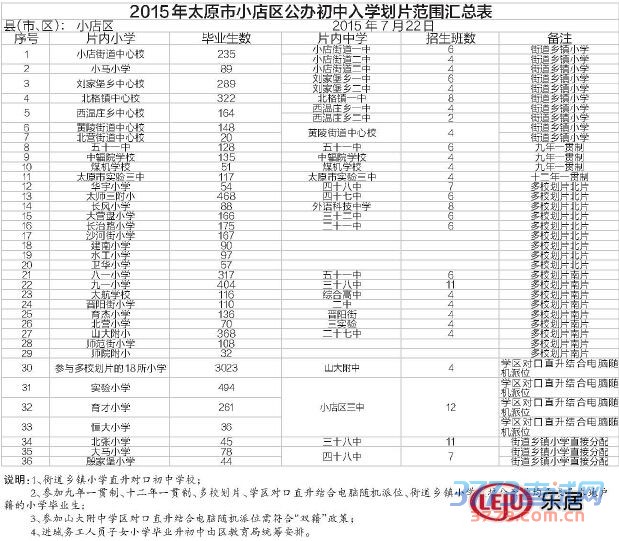 多校划片派位资格为:实验小学、育才小学、恒大小学未能学区对口直升小店区三中的、本地户籍且学籍满一年的小学毕业生。
